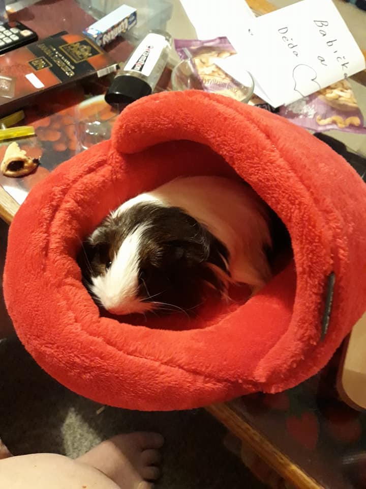 Tentokrát jsem ji stihla i hnedka vyfotit... A rovnou jsem nafotila i ostatní morčíky - Dortíka, Koblížka, Bertíka, Kimmy a Fantanku